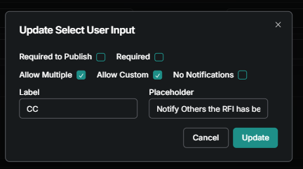 Allow Custom - If checked, it adds the ability to type in a user that is not in the directory. Ex - Names need to go in Mercury who are not Mercury users like attendance on Meetings or Equipment inspections.